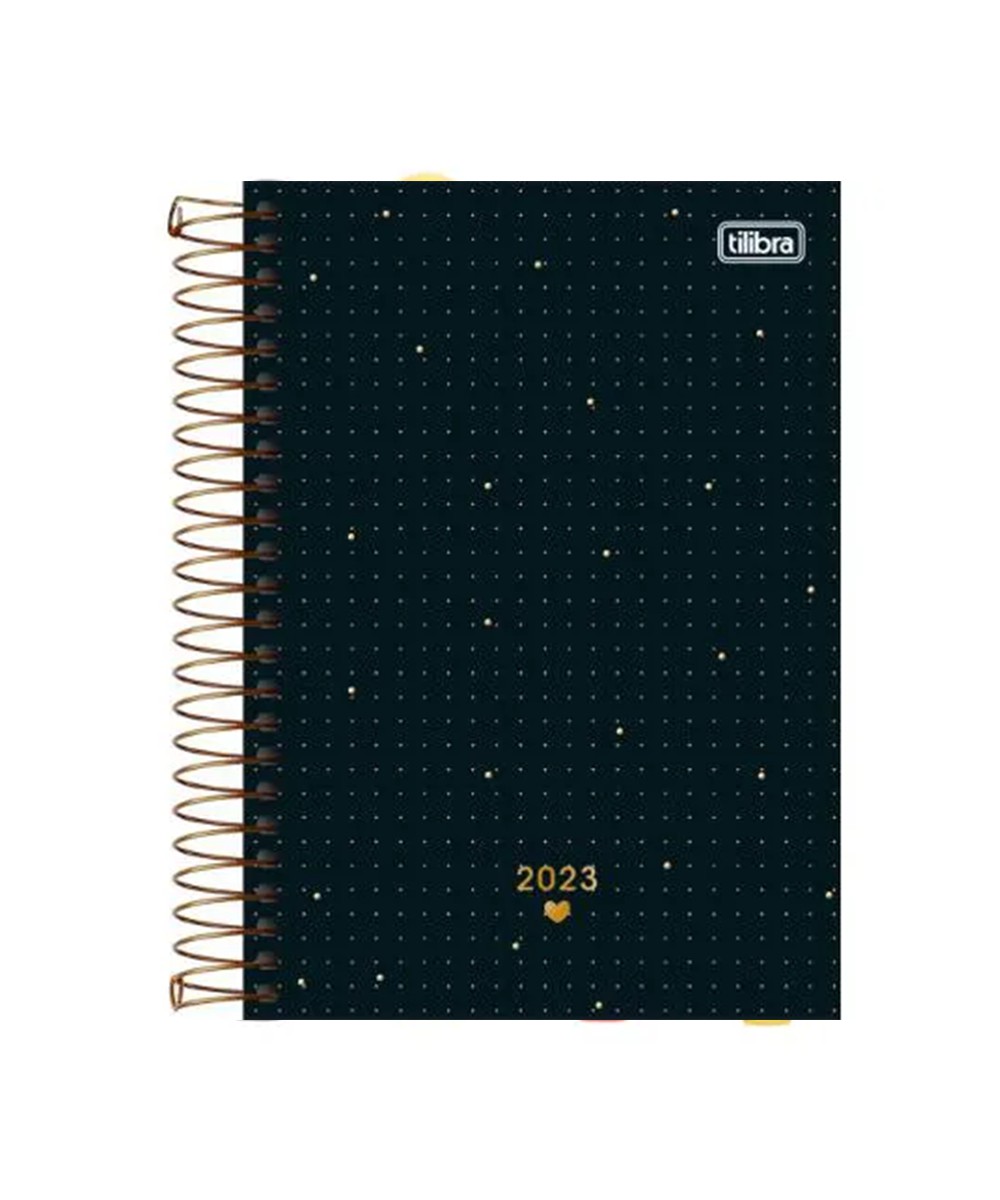 A Agenda Espiral Diária 14 x 20 cm West Village 2023 é ideal para a organização do dia a dia. O produto, com visão de um dia por página, exceto sábado e domingo, possui capa estampada com detalhe metalizado, parte interna decorada, bolsa de papel e folha de adesivos